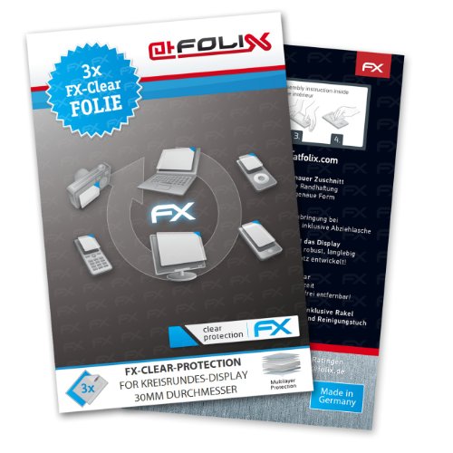 atFoliX FX-Clear Protection d'écran pour Écran circulaire 30mm Diamètre (3 pièces) - protection d'écran ultra-claire! La plus haute qualité